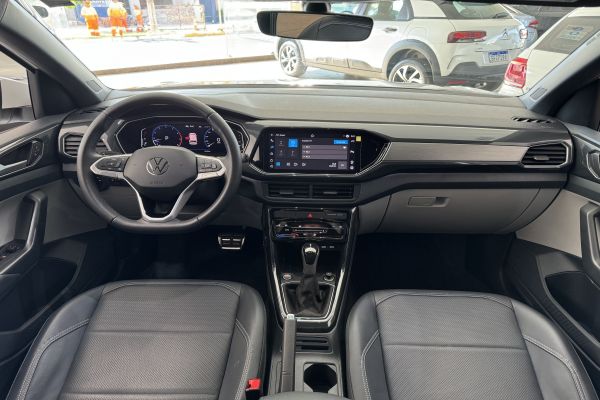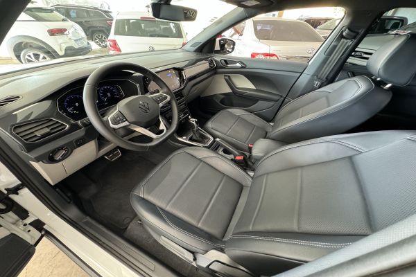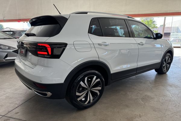 Volkswagen T-Cross 1.4 Highline 250 TSI 2023/2024. Único dono, garantia de fábrica, completo, câmbio automático, flex, bancos em couro, central multimídia, sensor e câmera de ré, Apple CarPlay e Android Auto, volante multifuncional, piloto automático, controle de som no volante, ar condicionado digital, direção elétrica, rodas de liga leve, em perfeito estado de conservação, RARIDADE.